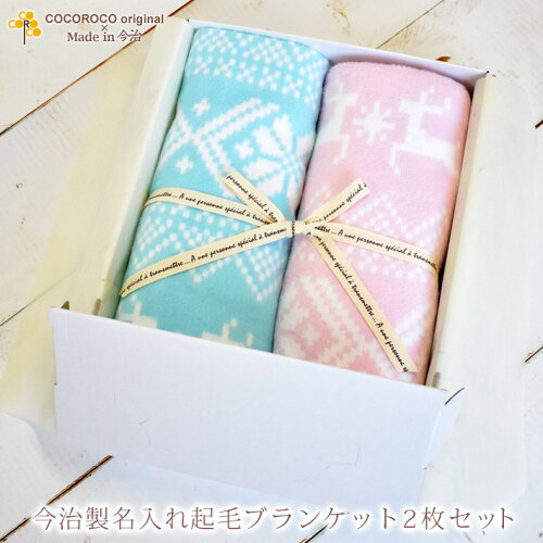 出産祝い ギフトセット 名入れ 『ひだまり今治製起毛ブランケット』2枚セット(ギフトボックス付き、ホルダー無し) 今治製 名前入り 双子 ベビー 赤ちゃん 男の子 女の子 孫 プレゼント バスタオル タオルケット ひざ掛け 綿毛布 日本製 百日祝い 送料無料 ココロコ
