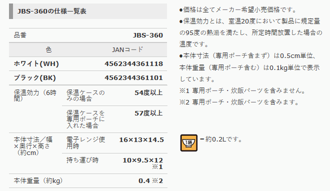 サーモス ごはんが炊ける弁当箱約0.7合 [JBS-360-WH] 象印 ステンレスフードジャー はこちらから↓↓ 象印 ステンレスマグ はこちらから↓↓ 《ご注意点》 ●【納期】通常一週間ほどです。