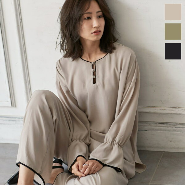 パイピングジョーゼットパンツと合わせて着て頂くと、とびきりお洒落なセットアップコーデに。