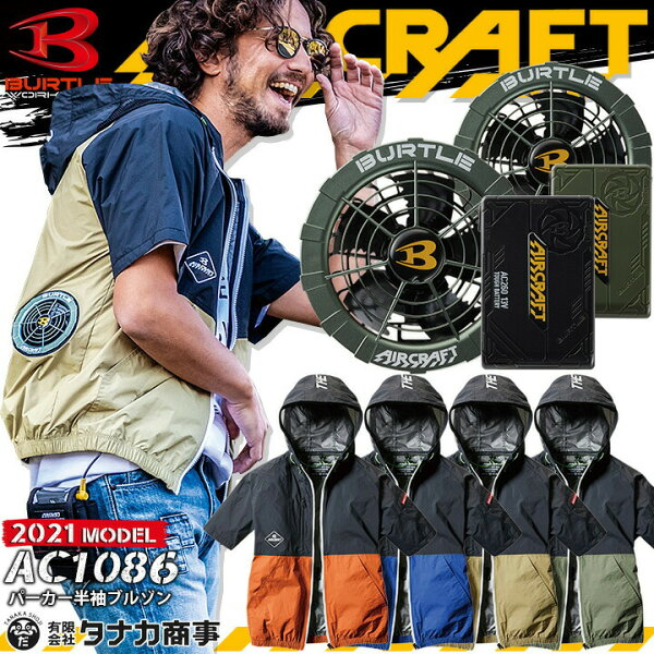 TOP > 【即日発送】 バートル 空調作業服 エアークラフト ファン付き セット パーカー 半袖ブルゾン AC1086 緑ファン&バッテリーセット AC260 AC271 メタリックグリーン フード付き 2021年モデル 熱中症対策 撥水 遮熱 男女兼用 作業服 BURTLE