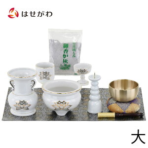 【P5倍スーパーSALE中】仏具セット 具足 花立 火立て 香炉 湯呑 仏飯器 防火 仏壇マット 香炉灰 リン おりん リン棒 布団 仏壇 小物【陶器 仏具 セット 15】 お仏壇のはせがわ