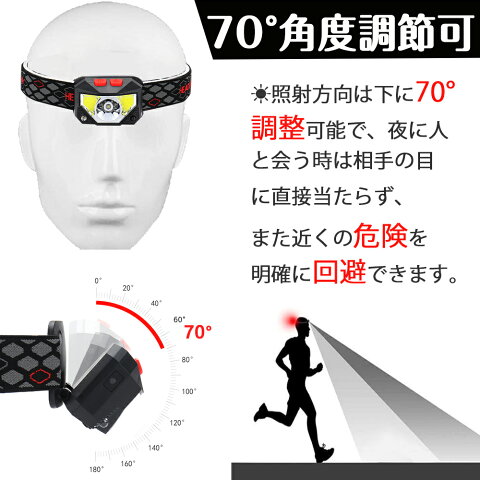 商品情報《仕様》 ・ ライト 本体長さ 60mm ・バンドの長さ 最長46cm(伸縮性があるため、周囲60cmほどのヘルメットへのセッティングも問題ありません) ・重量 50g ・点灯モード: ◆充電時 → 電池ボックスのランプが青点灯 ◆充電完了 → 電池ボックスのランプが緑点灯 ご注意: 1.普段のご使用時は、人や動物の目を直射しないでください。