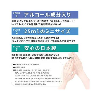 アルコールハンドジェル 日本製 除菌ジェル 25mL トラベル 銀イオン配合 ヒアルロン酸Na配合 携帯用