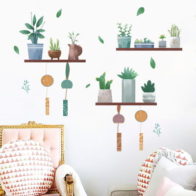 送料無料 ウォールステッカー 壁紙シール 模様替え 飾り デコレーション 室内装飾 DIY 防水 植物 緑 葉 グリーン ボタニカル リーフ 風鈴 盆栽 鉢植え プランター インテリア雑貨 貼り付け簡単 おしゃれ お洒落 子供部屋 キッチン トイレ 窓