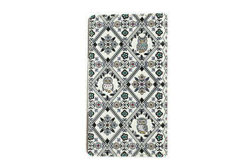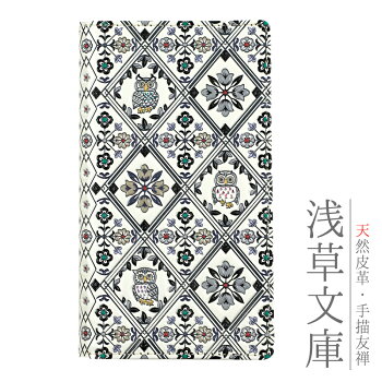 播州姫路の真っ白になめした牛革に彩色豊かな柄をあしらった文庫革。