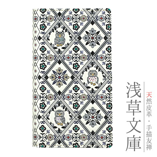 スマホケース スマホカバー 手帳型ケース 手帳型 白 オフホワイト 黒 ブラック モノトーン フクロウ ふくろう 梟 花 サンセット 革 文庫革 天然皮革 浅草文庫 友禅染 型友禅 手描き友禅 江戸小紋 浅草 日本製 上品 カジュアル オシャレ 可愛い 大人可 和装 着 No.10-5087-ss