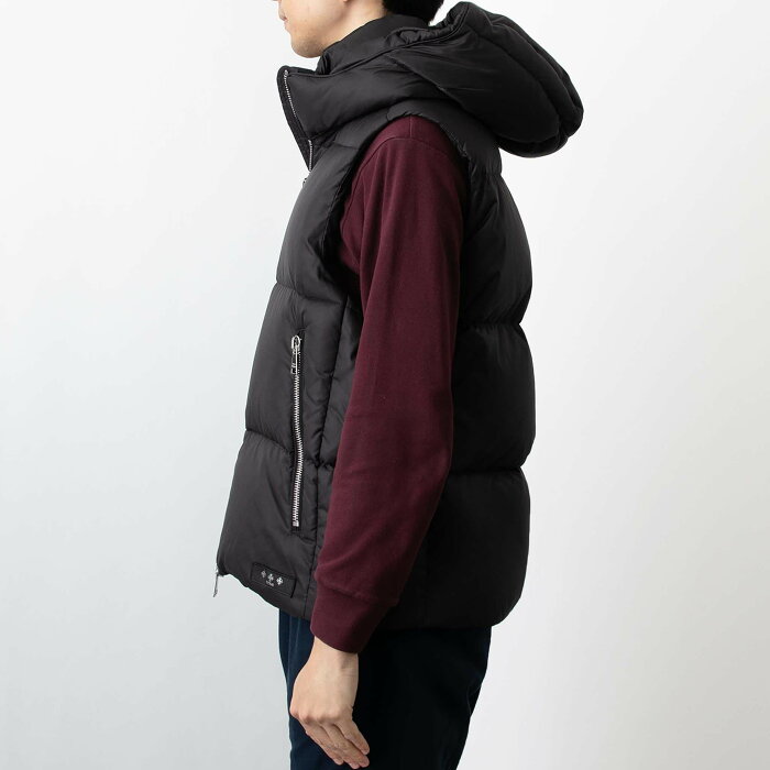 詳細表詳細データスタイルメンズ ダウンベストカラー[全2色]01 BLACK(ブラック)35 KHAKI(カーキ)メタル部分:シルバー素材NYLON(ナイロン)100%中綿:DOWN(ダウン)90%、FEATHER(フェザー)10%仕様外ポケット(ジッパー)×2フード(取り外し可/ジッパー)×1重量(約)735g(※サイズによって若干異なります)サイズ (cm)▼サイズ着丈身幅肩幅ウエスト裾周りアームホール162534210210656265554310811058367594411011458469624611411662573634812012462サイズ計測方法注意書き※入荷時期により、仕様が異なる場合がございます。