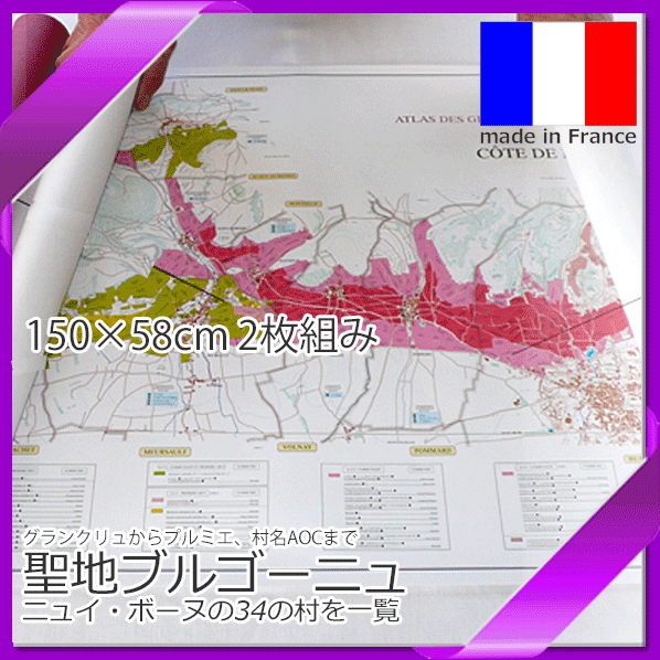 ブルゴーニュの中心部、コートドニュイとコートドボーヌの150×58cmが2枚組みです。