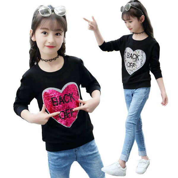 メール便送料無料 面白くて変色スパンコールTシャツ キッズ 子供服 秋冬着 女の子 長袖 子供シャツ トップス 110cm 120cm 130cm 140cm 150CM 160CM